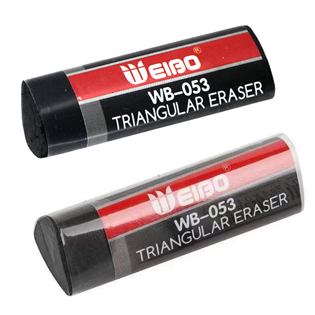 Черный ластик Weibo треугольной форме изготовлен из качественного материала PVC, он не имеет запаха, не оставляет пыли, и легко очищается.Он идеально подходит для точного стирания графитных линий при рисунке, черчении или офисной работе. Удобно ложится в руку, а картонный держатель в зоне захвата повышает комфорт в использовании.