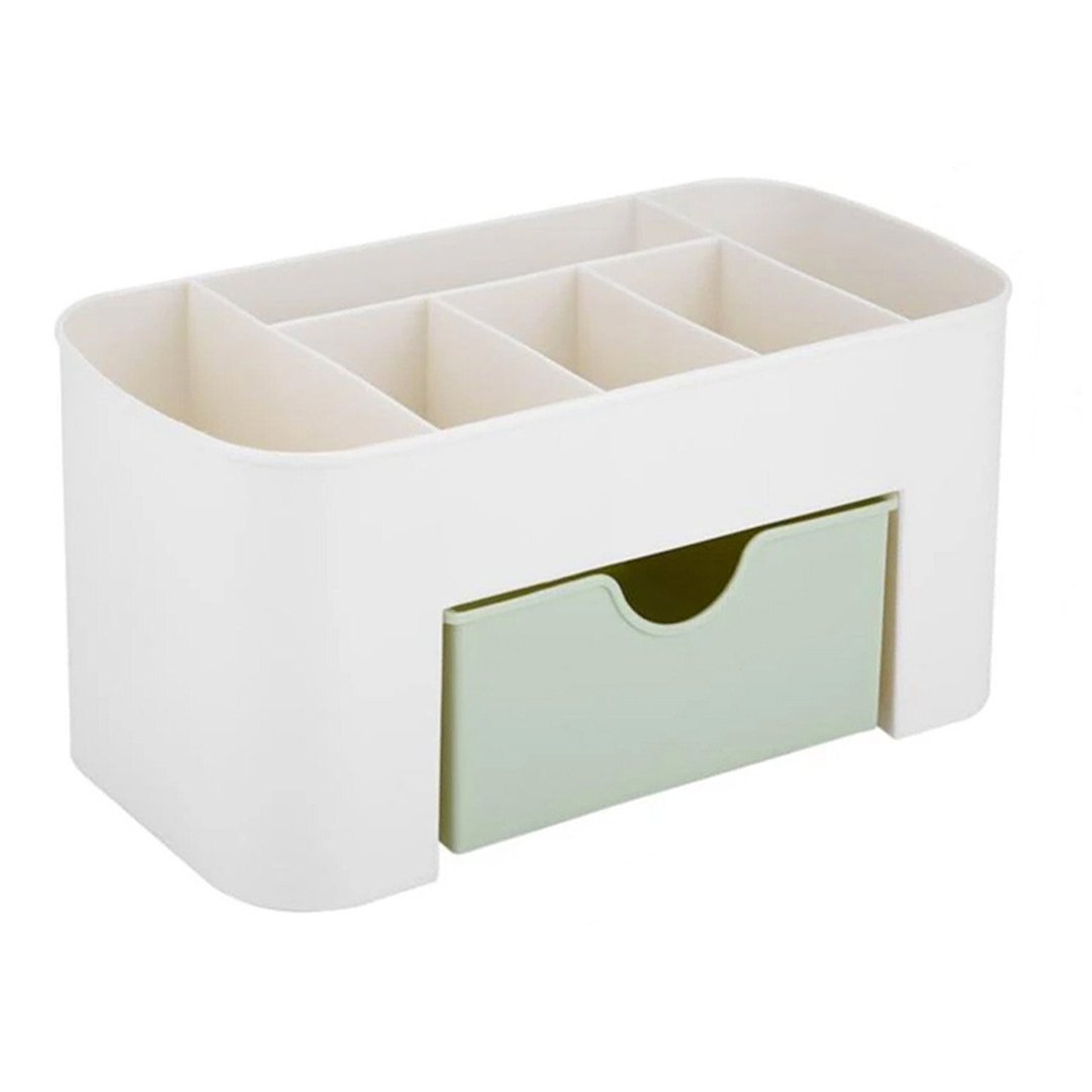 Универсальный органайзер DASWERK — это компактное и стильное решение для хранения самых разных предметов: от канцелярии и косметики до украшений и мелочей. Благодаря 6 открытым отделениям и 1 закрытому ящику, вы легко организуете пространство на рабочем столе, в ванной или спальне.