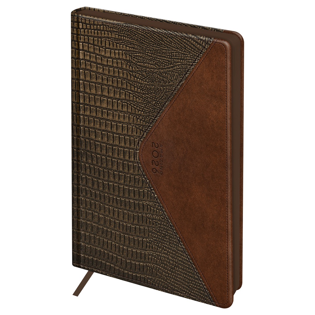 Солидный, коричневый, датированный ежедневник премиального качества, идеально подойдет для офисных работников и людей, занимающихся бизнесом, ценящих свое драгоценное время.