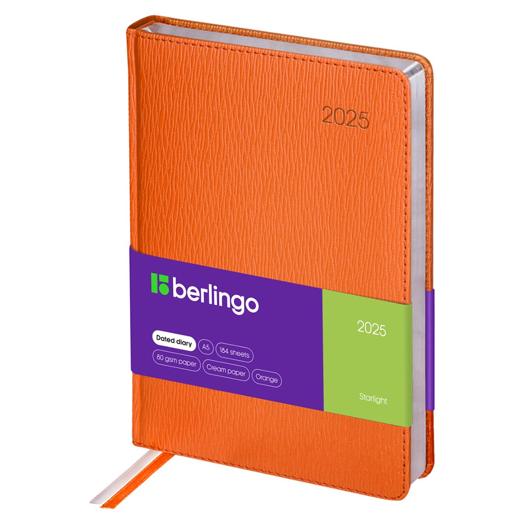 Глянцевый датированный ежедневник Berlingo «Silver Pristine» на 2025 год формата А5 с твердой обложкой из экокожи и поролоновой прослойкой идеален для повседневного использования.