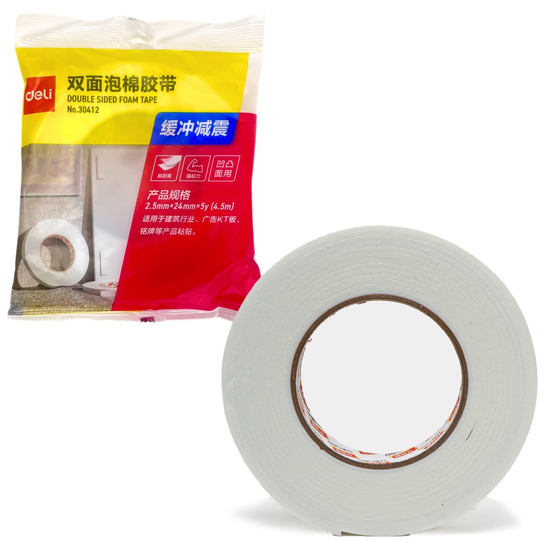 Двусторонняя вспененная клейкая лента Deli — это современное и надежное решение для монтажа и крепления без необходимости сверлить стены или использовать гвозди.