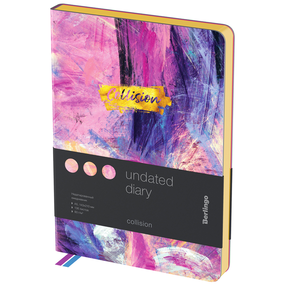 Стильный недатированный ежедневник «Collision» с золотым срезом и мягкой обложкой из искусственной кожи для планирования и записи важной информации, удобно носить с собой благодаря небольшому формату.