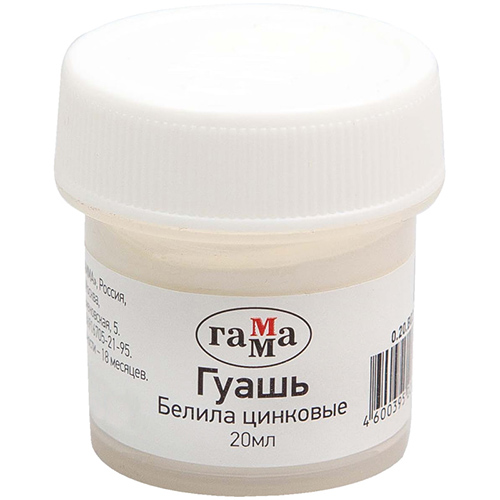 Гуашь художественная Гамма, белила титановые, идеально подходят для графики, живописных и декоративных работ. Краска прекрасно наносится практически на все материалы, но лучше всего на холст, картон и бумагу.