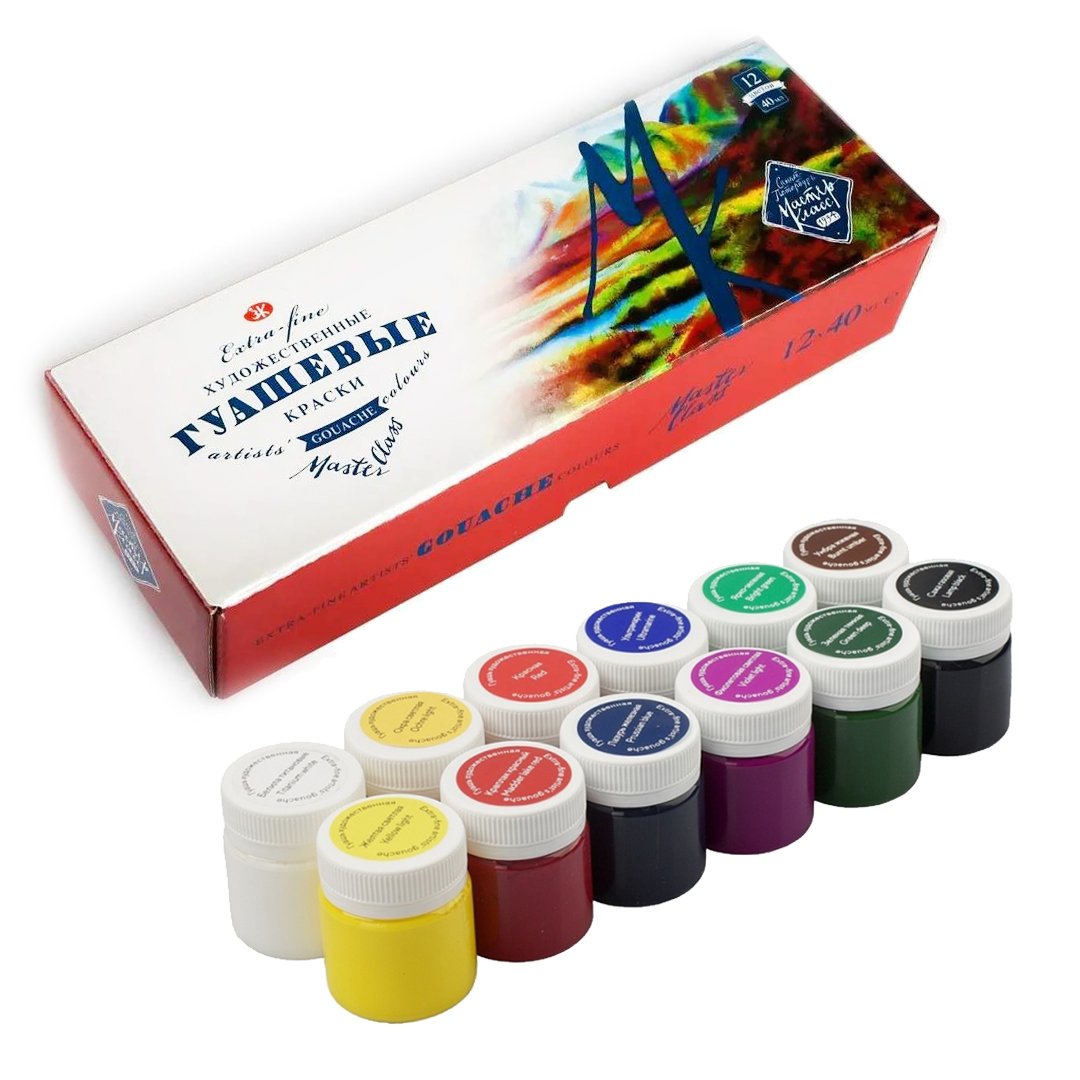 Гуашь «Мастер-Класс» предназначена для живописи, ее отличает превосходная укрывистость и плотность красочного слоя, приобретающего матовую бархатистость без разводов после высыхания.