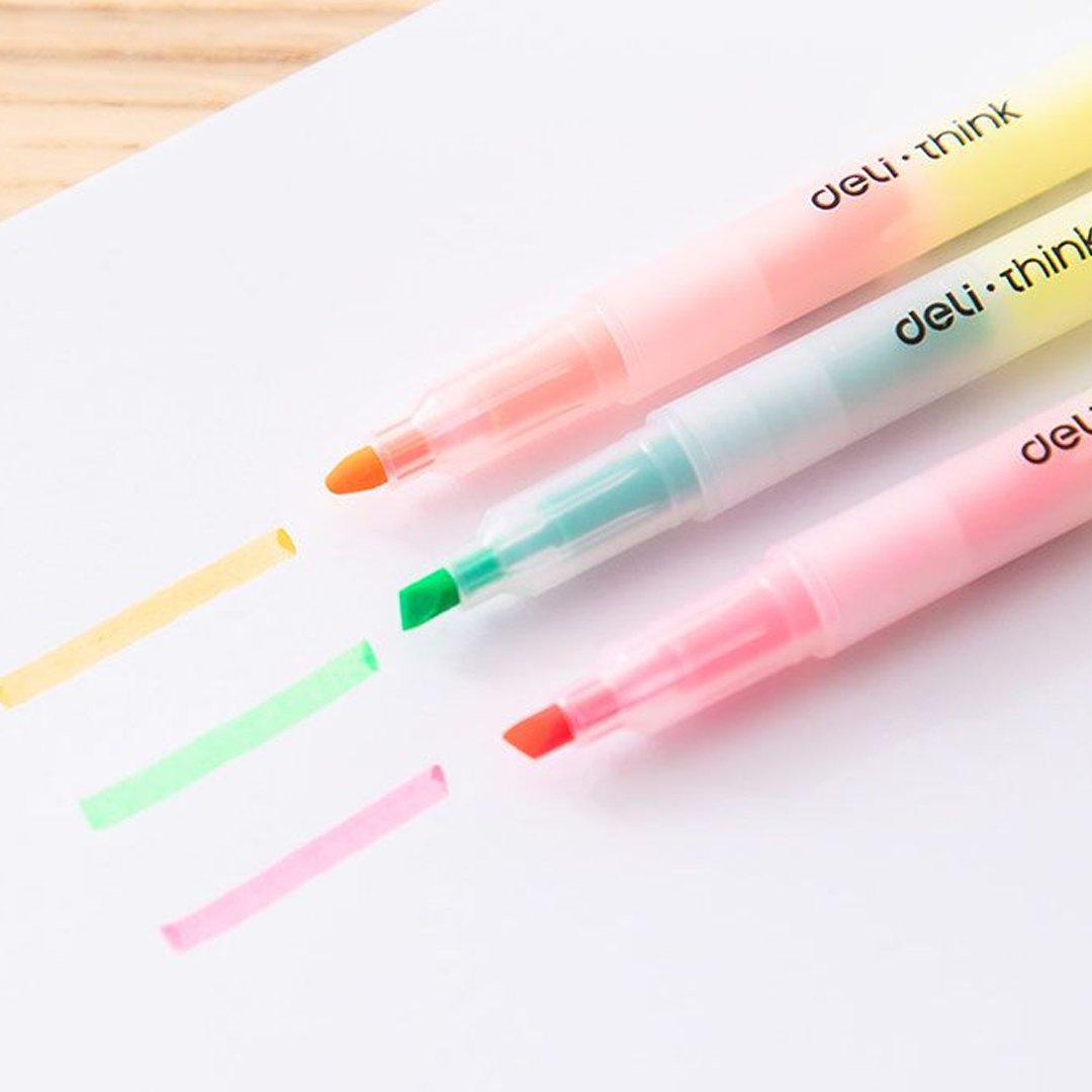 Набор двусторонних текстовыделителей Deli Think — 6 ярких маркеров с удобными скошенным и пулевидным наконечниками. Чернила быстросохнущие, невыцветающие, износостойкие и нетоксичные. Практичный выбор для выделения текста и работы с документами!