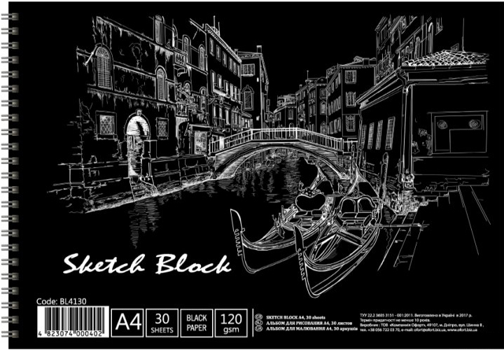 Скетчбук (альбом для рисования) А4 формата из чёрной плотной бумаги для эффектного рисования фломастерами, цветными карандашами, гелевыми ручками и белой тушью, с плотной подложкой для зарисовок в дороге.