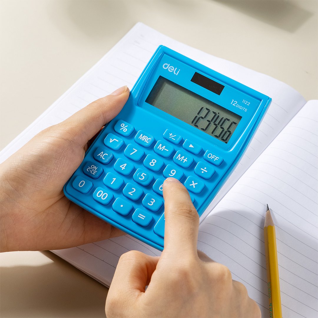 Карманный калькулятор DL-1122 синий, 12-и разрядный, удобен в использовании, легкий, компактный, подойдет для дома, школы или офиса.