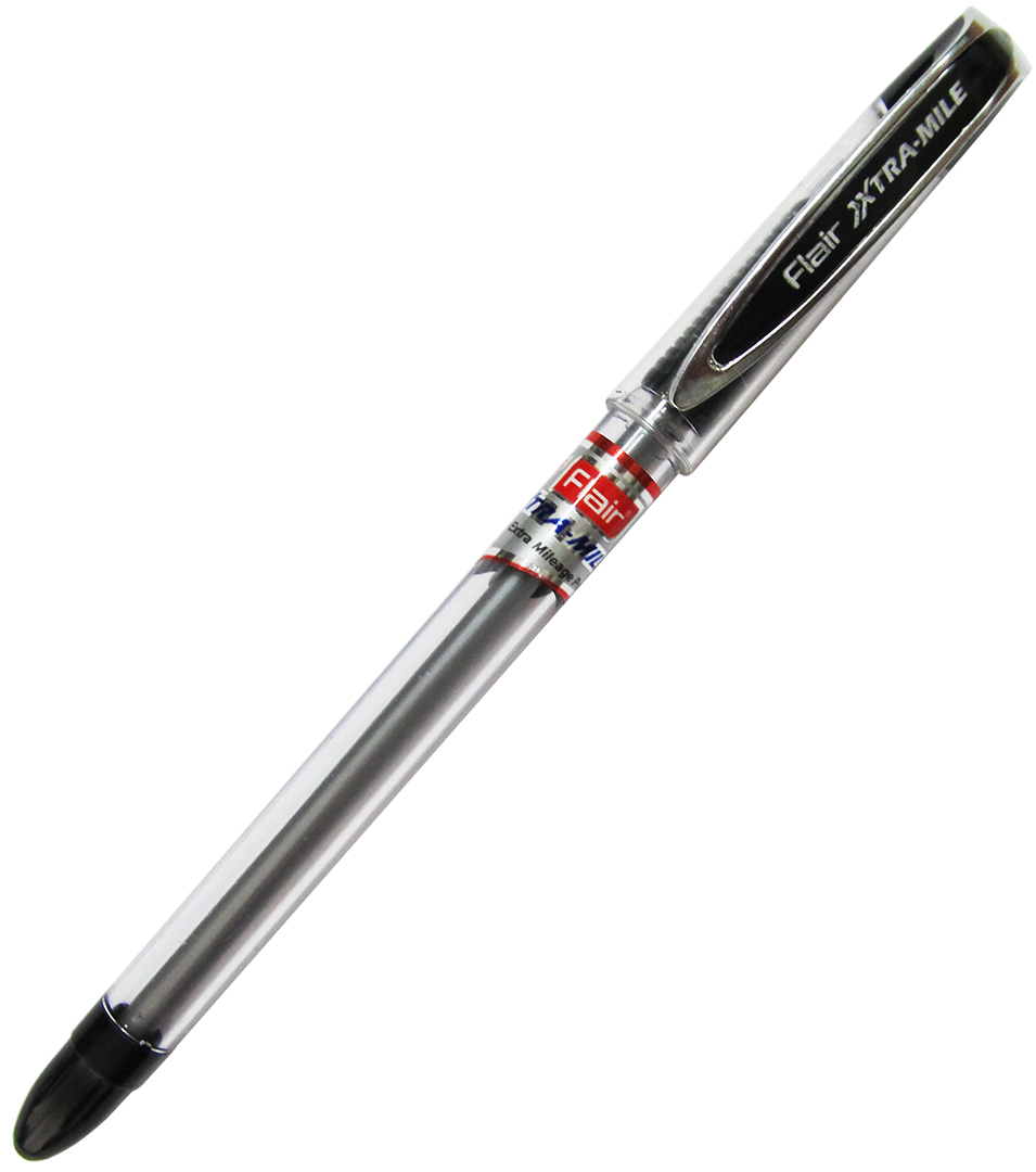 Ручка шариковая Flair XTRA-MILE с черными чернилами на масляной основе, в прозрачном корпусе с прорезиненной областью захвата для удобного письма диной 900-1000 метров. Цвет колпачка соответствует цвету чернил.