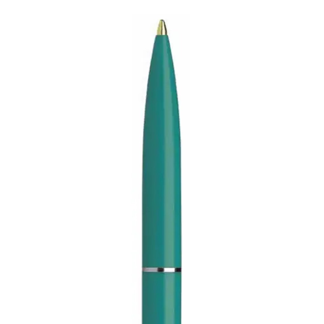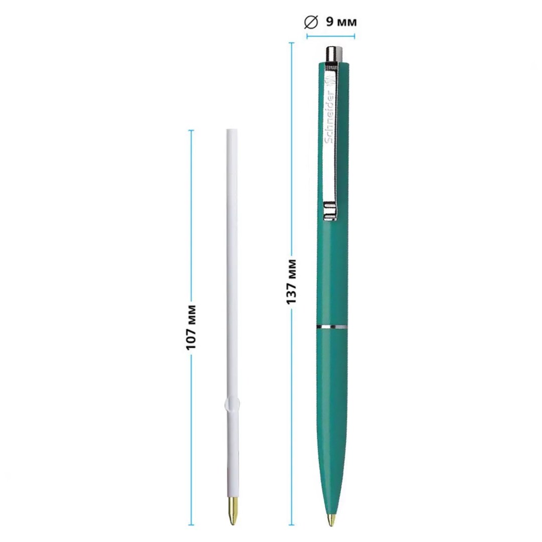 Ручка шариковая автоматическая Schneider К15 в зеленом корпусе, с синими чернилами на масляной основе, со стальным клипом, кольцом и кнопкой подачи стержня. Отлично подходят для заполнения и подписи документов.