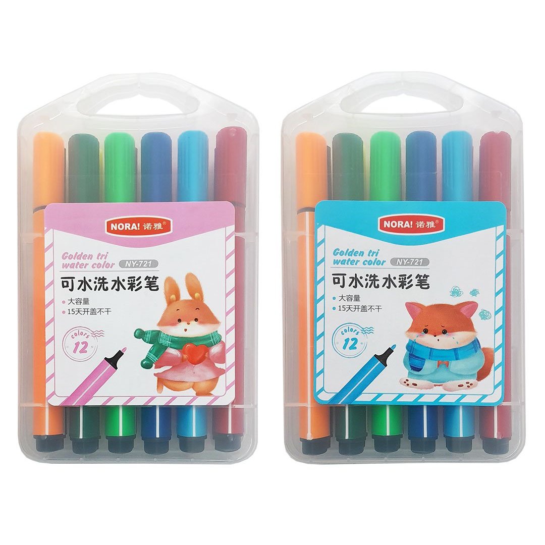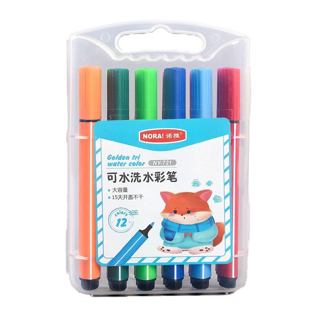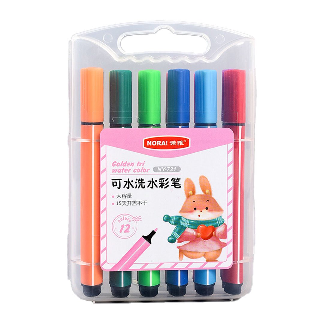 Фломастеры NORA!, представленные в наборе из 12 ярких цветов, удобно размещены в пластиковом пенале.