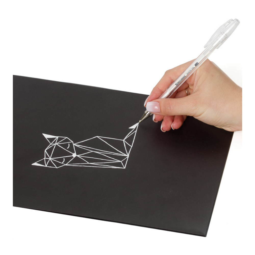 Гелевая ручка «White Pastel» с белым цветом чернил идеально подходит для создания рисунков на черной бумаге и станет отличным помощником в реализации творческих замыслов.