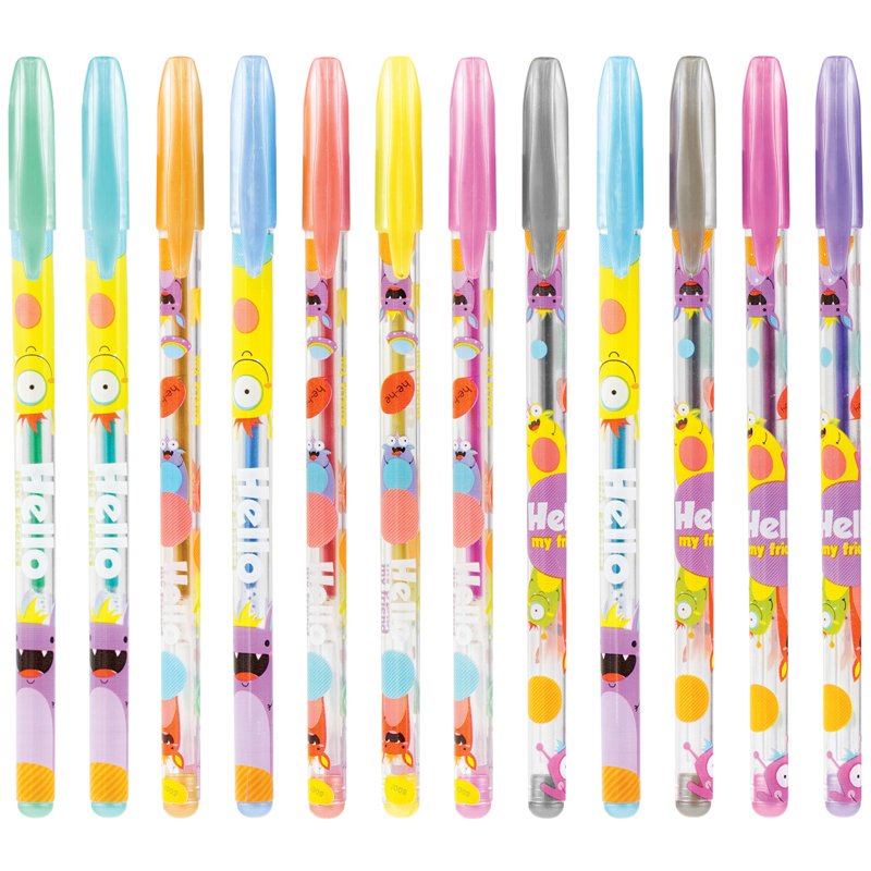 Набор ручек гелевых, 12 цветов, Металлик, «Монстрики» — этот товар можно заказать оптом и в розницу с доставкой по Беларуси на сайте M4,