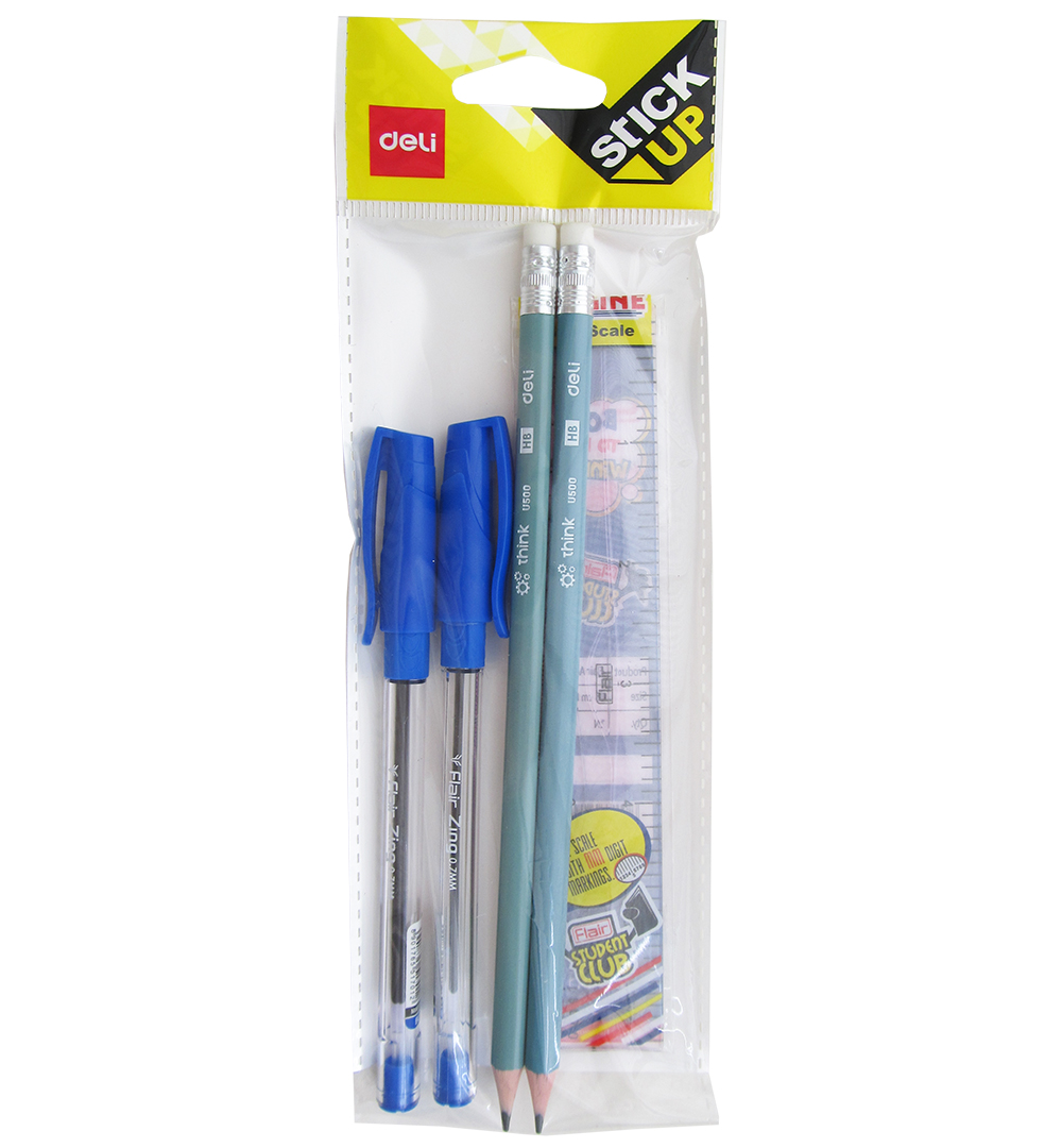 В набор входит: альбом для рисования А4 40 л., бумага цветная А4 7 цветов, 21 л., картон цветной А4 8 цветов 16 л., тетрадь А5 клетка крупная 12 л. (5 шт.), тетрадь А5 линейка косая 12 л. (5 шт), карандаши 12 цветов, акварель без кисти 12 цветов, гуашь с УФ защитой яркости 6 цветов, пластилин восковый 8 цветов, клей карандаш 15 г, ручка шариковая синяя (2 шт.), карандаш с ластиком НБ трехгранный пластиковый (2 шт.), линейка 15 см, ножницы 121 мм, точилка одинарная, с ластиком, в блистере.