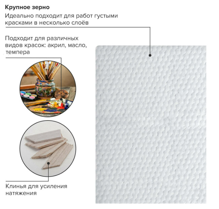 Холст на подрамнике, 30х40, 100% хлопок, крупное зерно, грунтованный, 440 г/м², BRAUBERG — этот товар можно заказать оптом и в розницу с доставкой по Беларуси на сайте M4,
