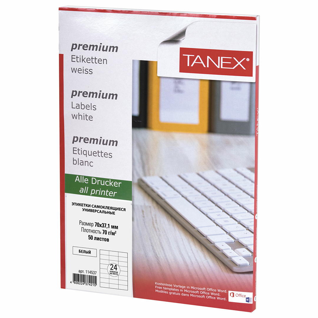 Универсальные самоклеящиеся этикетки TANEX позволят быстро и качественно подготовить адресные наклейки, регистрационные номера, аннотации при помощи лазерного или струйного принтера.
