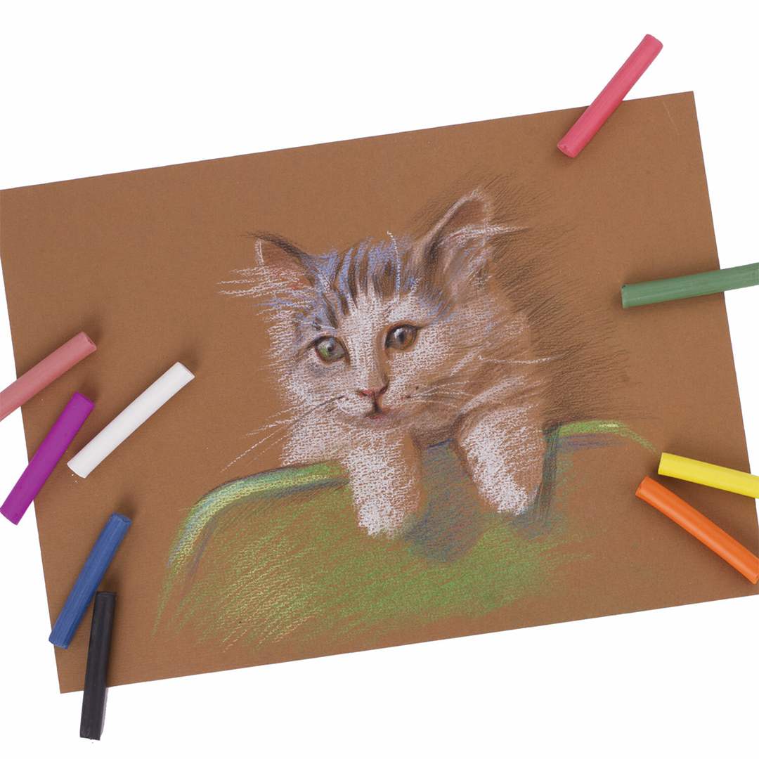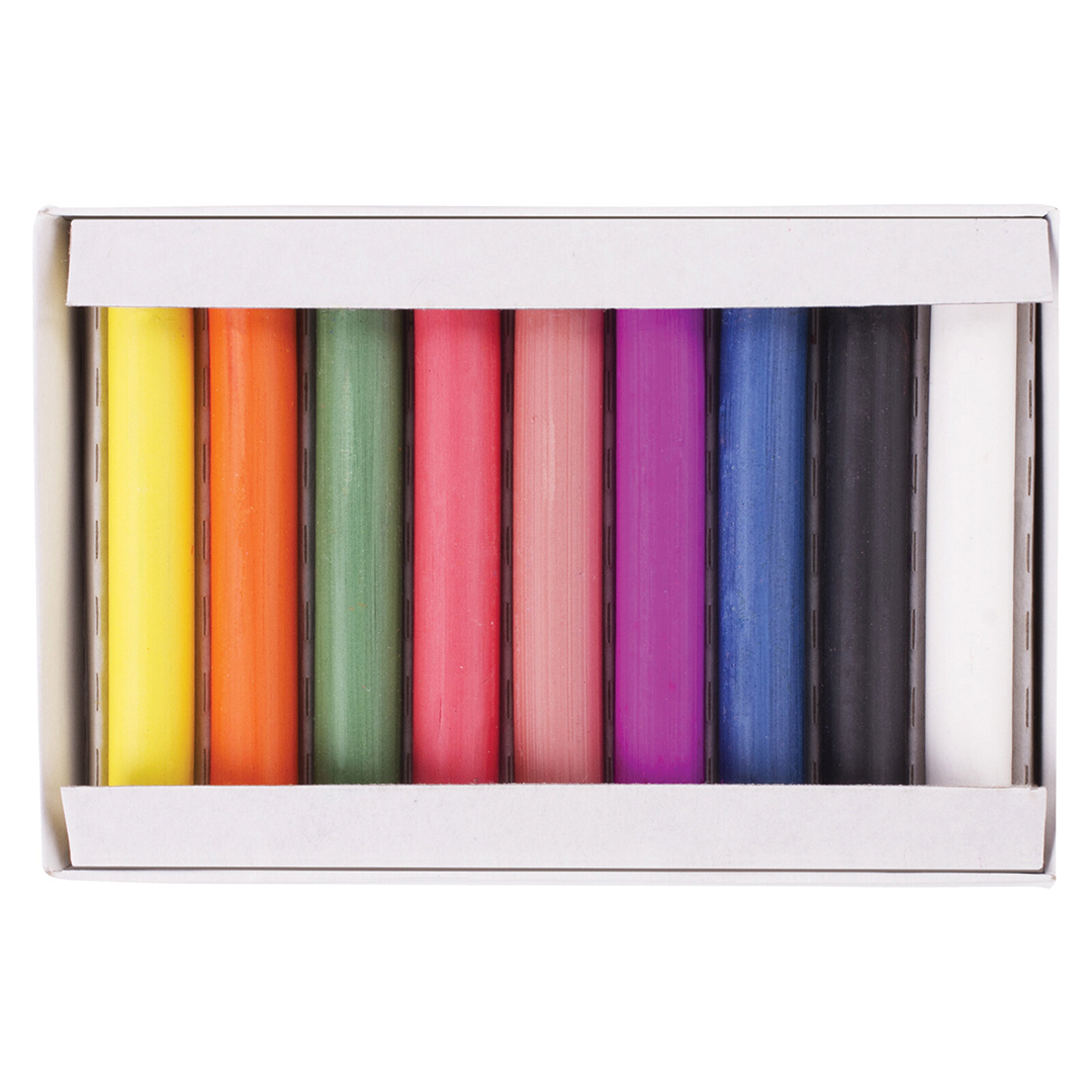 Пастель имеет вид брусков с круглым сечением, обёрнутых в бумажную обёртку. Она позволяет сохранять руки и одежду чистыми.