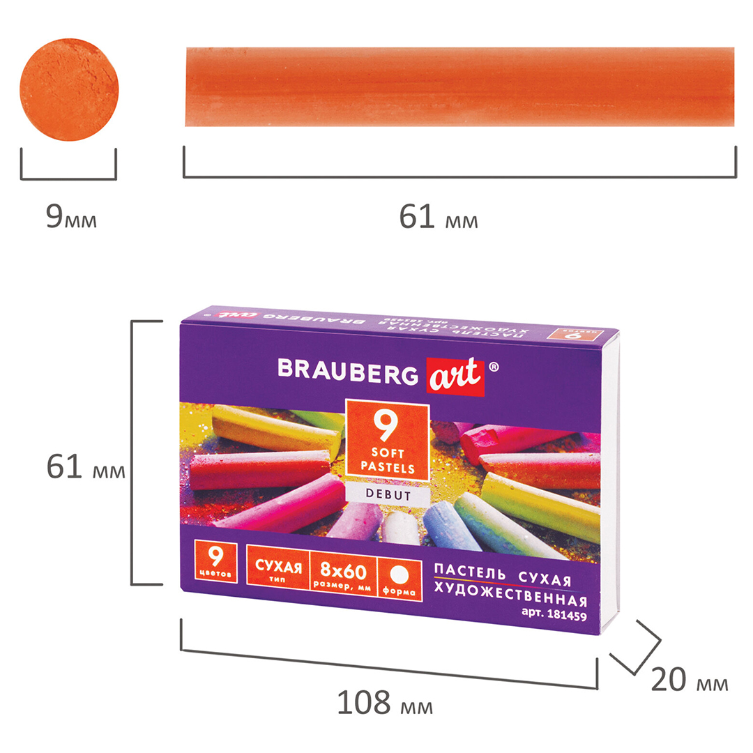 Пастель художественная, 9 цветов, ART, BRAUBERG — этот товар можно заказать оптом и в розницу с доставкой по Беларуси на сайте M4,