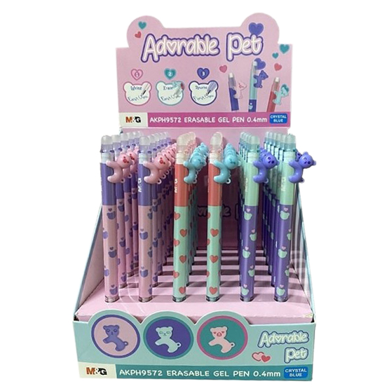 Гелевая синяя ручка M&G «ADORABLE PET» со стираемыми чернилами, которые легко удаляются с бумаги специальным ластиком, встроенным в колпачок ручки.