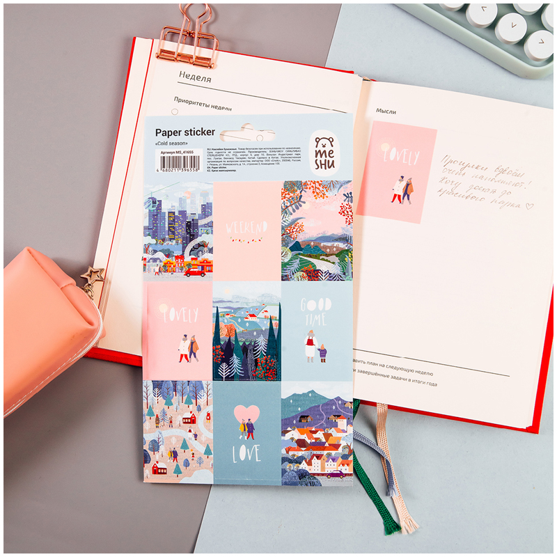 Бумажные наклейки MESHU «Cold season» — отличный помощник в креативном оформлении записей в блокнотах и дневниках.