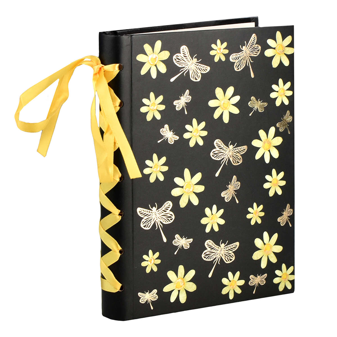 Недатированный ежедневник с декоративной лентой «Ромашки и стрекозы» для планирования и записи важной информации, удобно носить с собой благодаря небольшому формату.