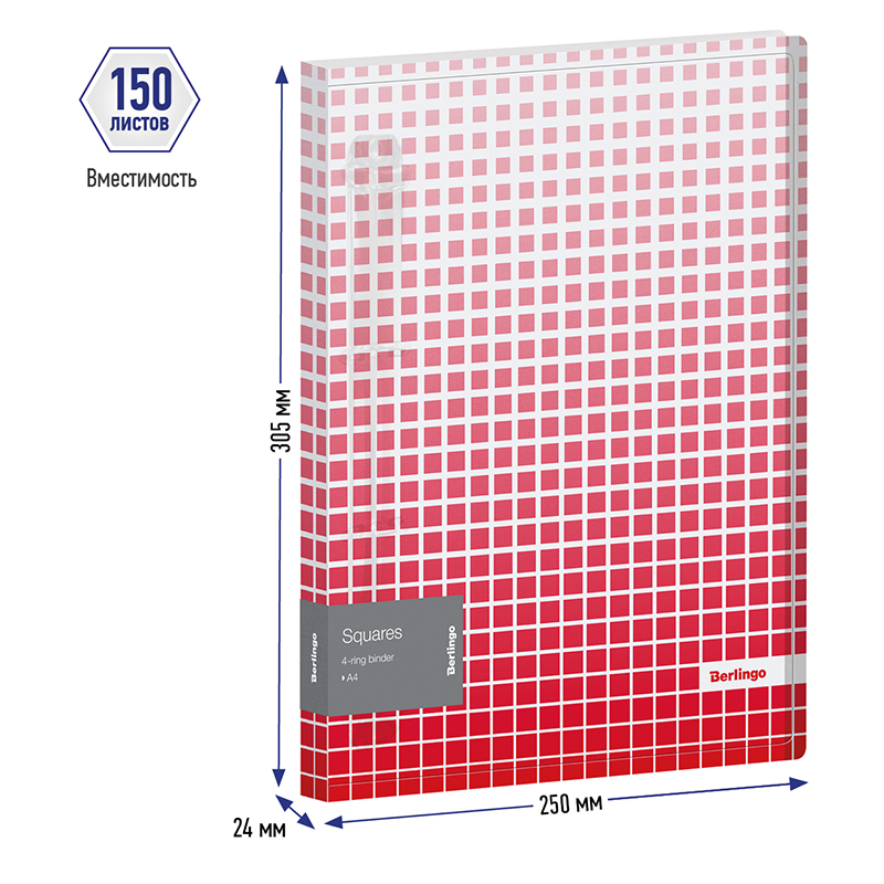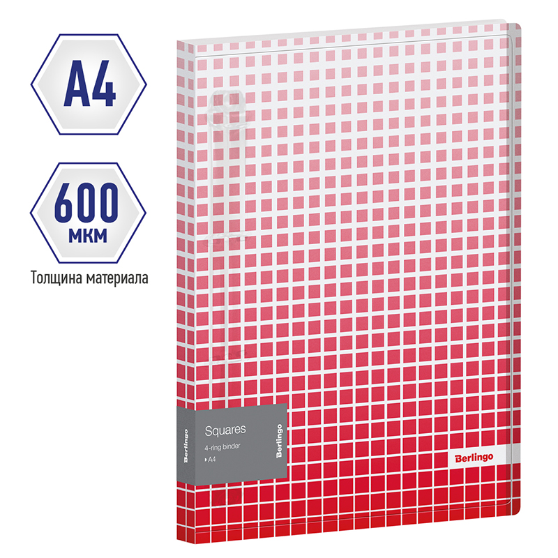 Папка пластиковая «Squares» на 4 D-кольцах изготовлена из высококачественного полипропилена с матовой текстурой поверхности «песок».