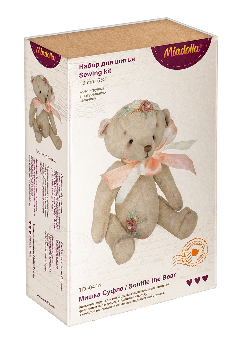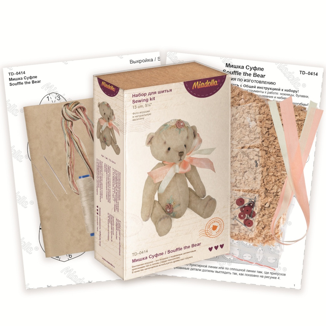 Набор для шитья Miadolla «Мишка Суфле» предназначен для изготовления игрушки-медведя по классической тедди-технологии — это технология изготовления игрушек с подвижным шплинтовым креплением лап и головы.