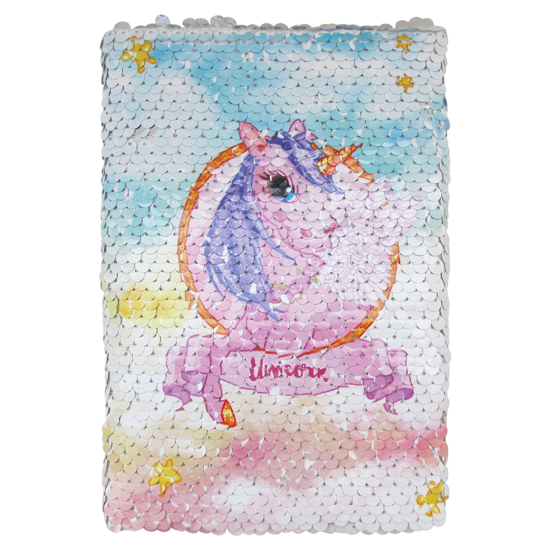 Блокнот в твердой обложке с отделкой в виде пайеток, может использоваться для записей, планирования, любых деловых и творческих задач.