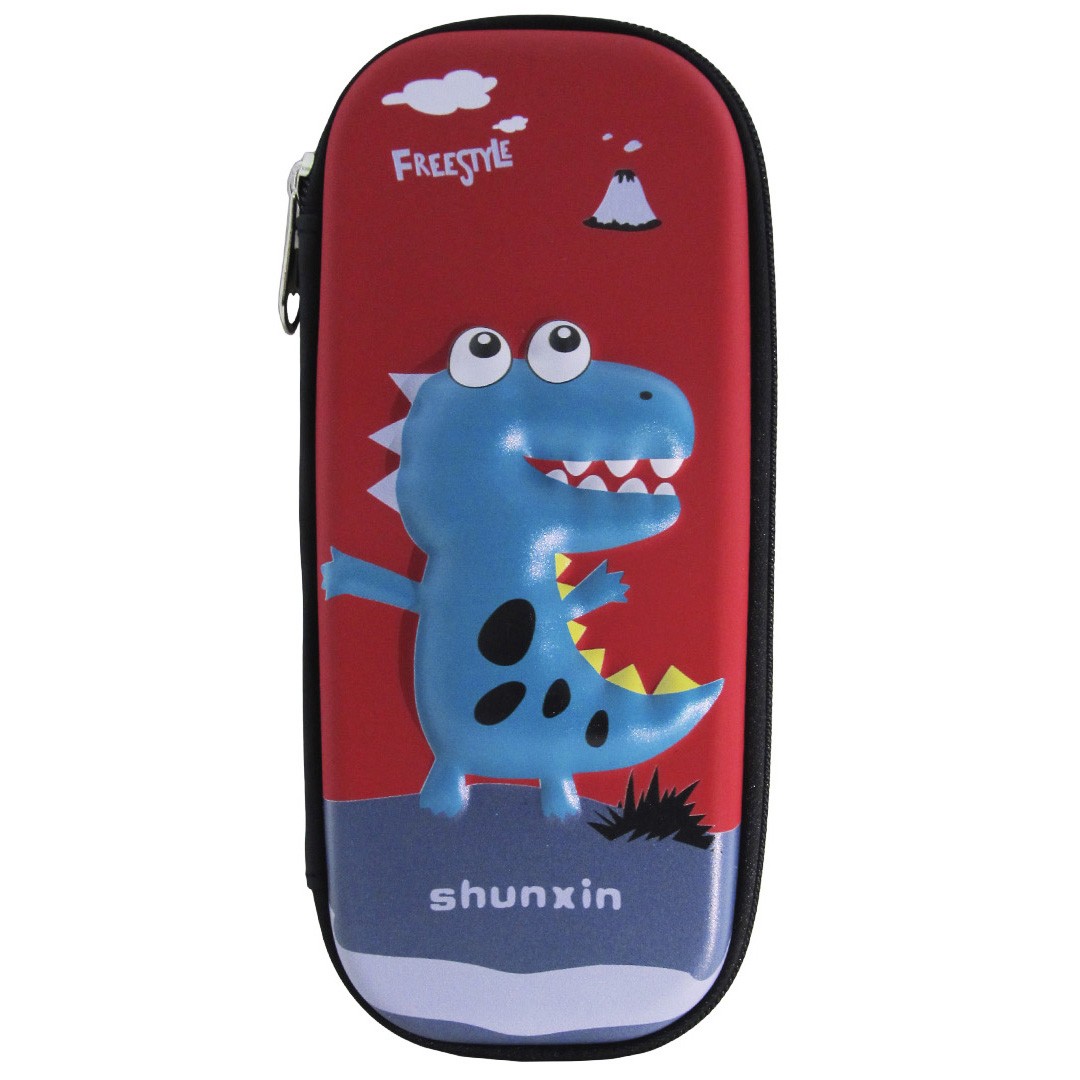 Удобный твердый школьный пенал «DINOSAUR» с объемным изображением, на молнии, для хранения письменных и чертежных принадлежностей.