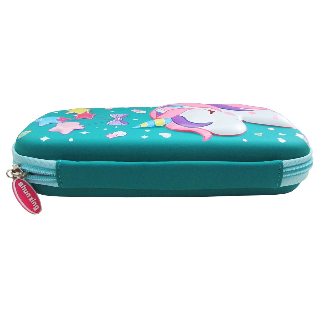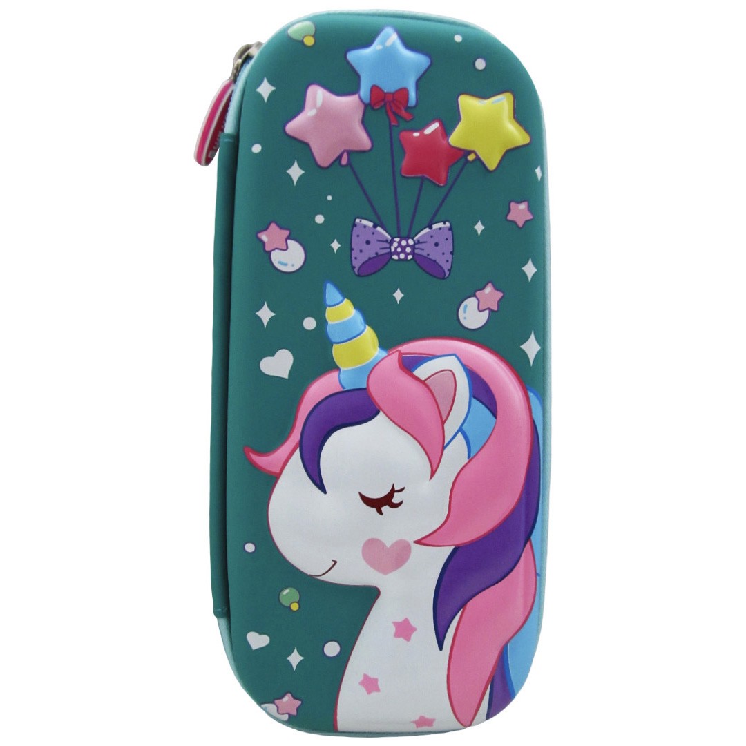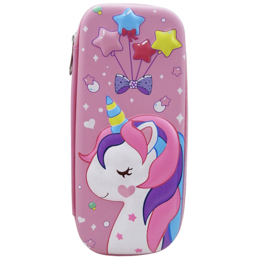 Удобный твердый школьный пенал «Единорог» с объемным изображением, на молнии, для хранения письменных и чертежных принадлежностей.
