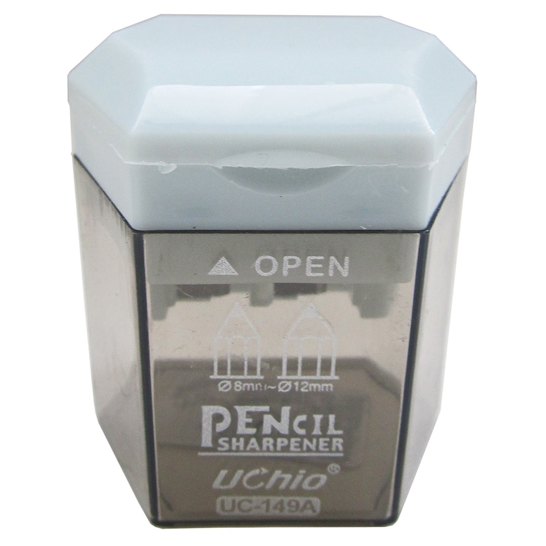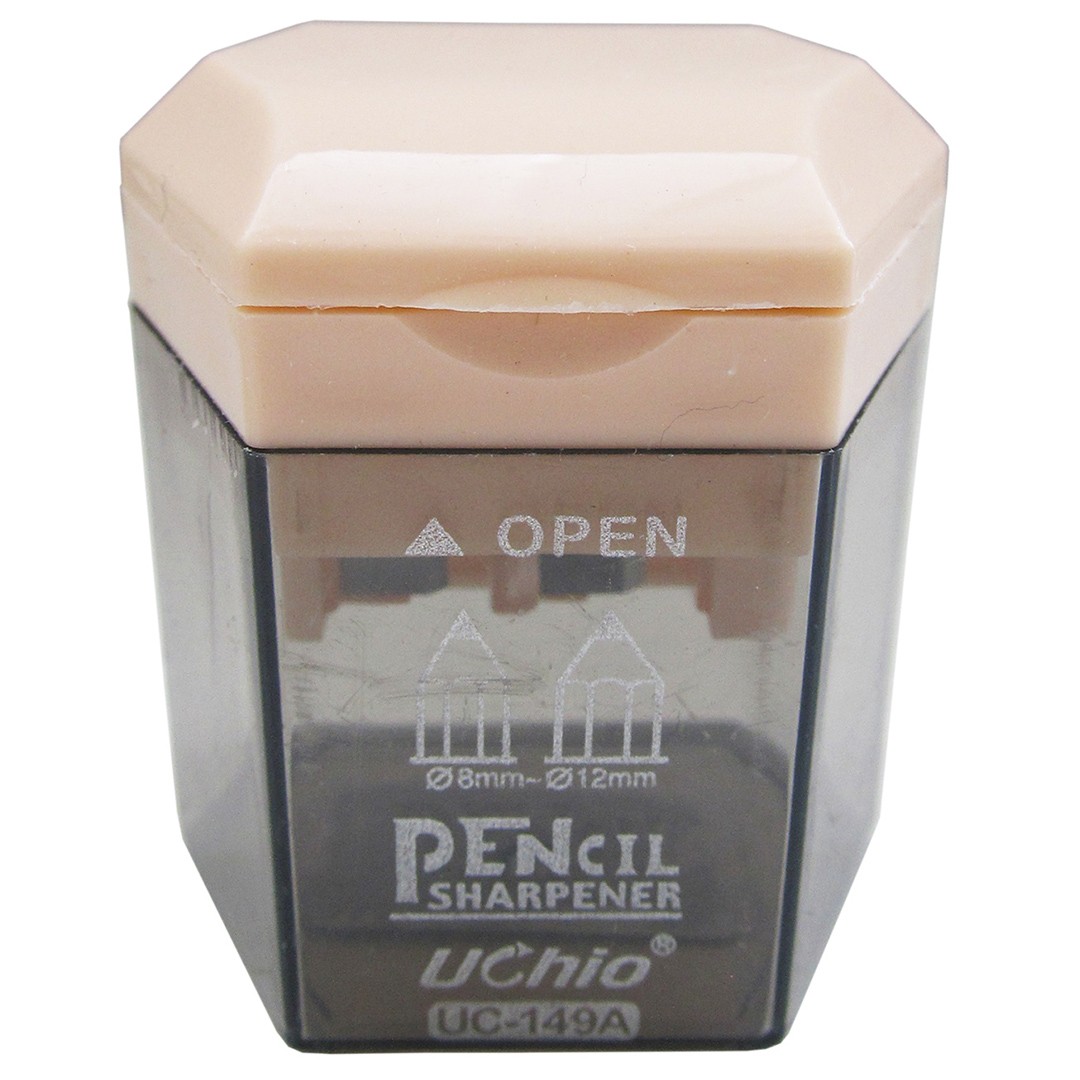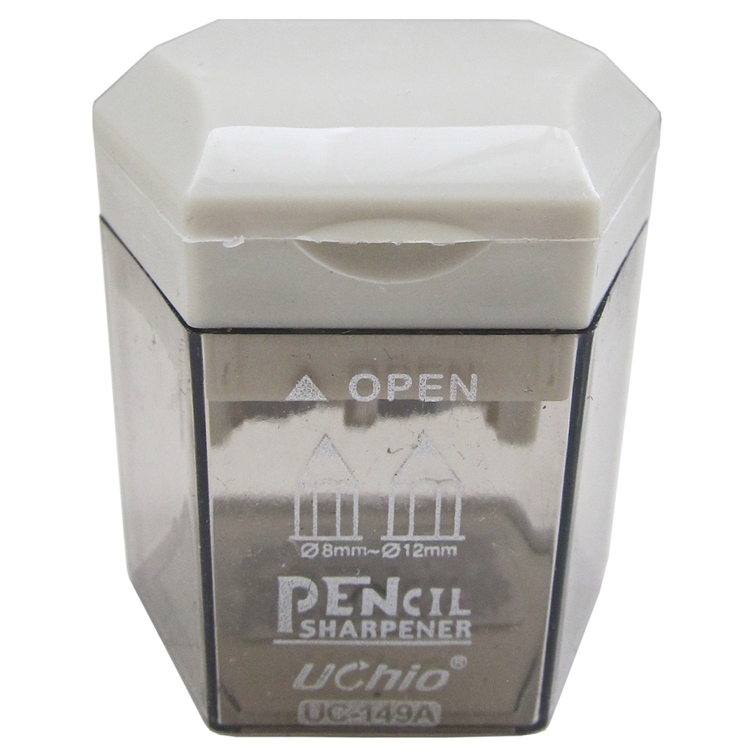 Двойная пластиковая точилка MORANDI с контейнером для цветных и чернографитных карандашей диаметром 8 и 12 мм.