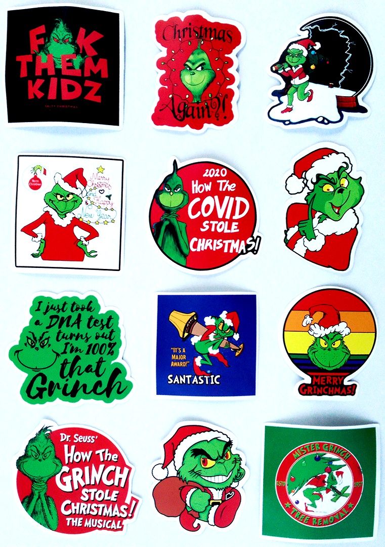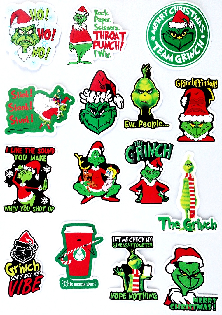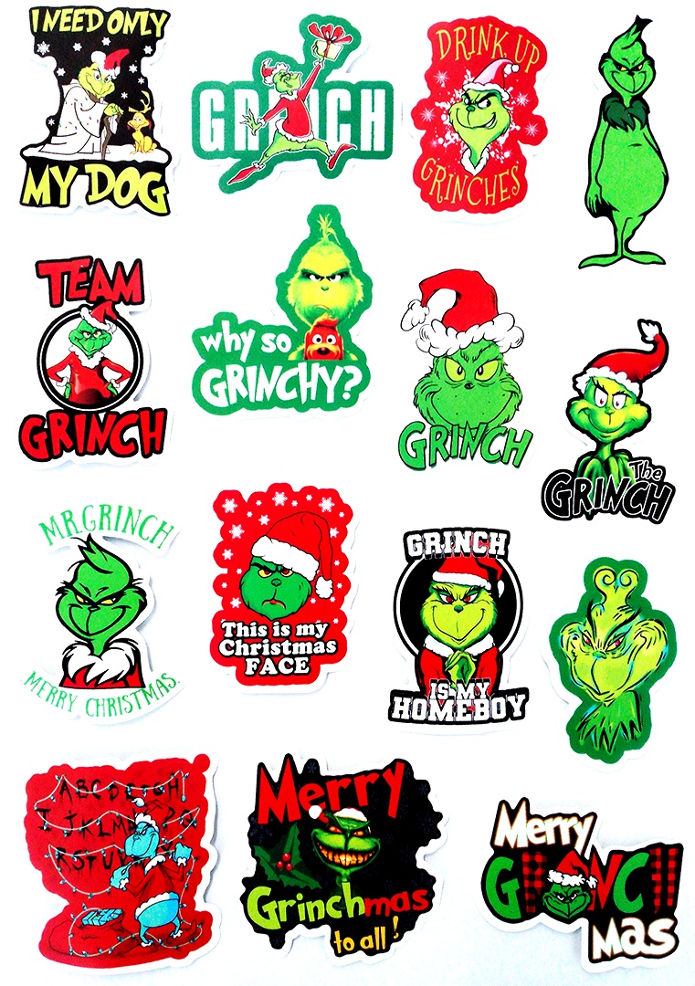 Набор наклеек (суперстикеров) с изображениями главного героя ГРИНЧА/GRINCH из фильма «Гринч — похититель Рождества» (50 шт в упаковке) самоклеящихся, многоразовых, водостойких, используется для размещения на любой гладкой поверхности.