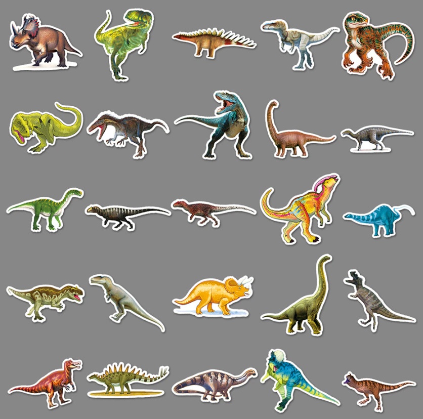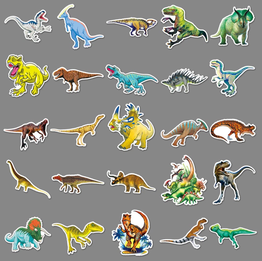 Набор наклеек (суперстикеров) ДИНОЗАВРЫ (50 шт в упаковке) самоклеящихся, многоразовых, водостойких, используется для размещения на любой гладкой поверхности.