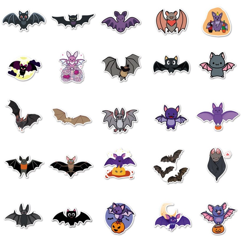 Набор наклеек (суперстикеров) ЛЕТУЧИЕ МЫШИ (50 шт в упаковке) самоклеящихся, многоразовых, водостойких, используется для размещения на любой гладкой поверхности.