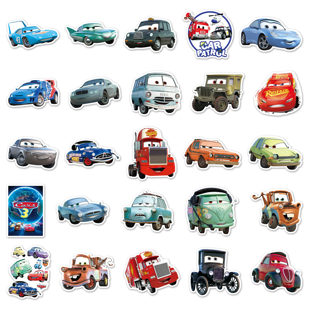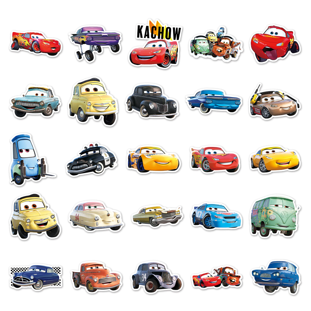 Набор наклеек (суперстикеров) с героями из мультфильма «Тачки», (50 шт в упаковке), самоклеящихся, многоразовых, водостойких, используется для размещения на любой гладкой поверхности.