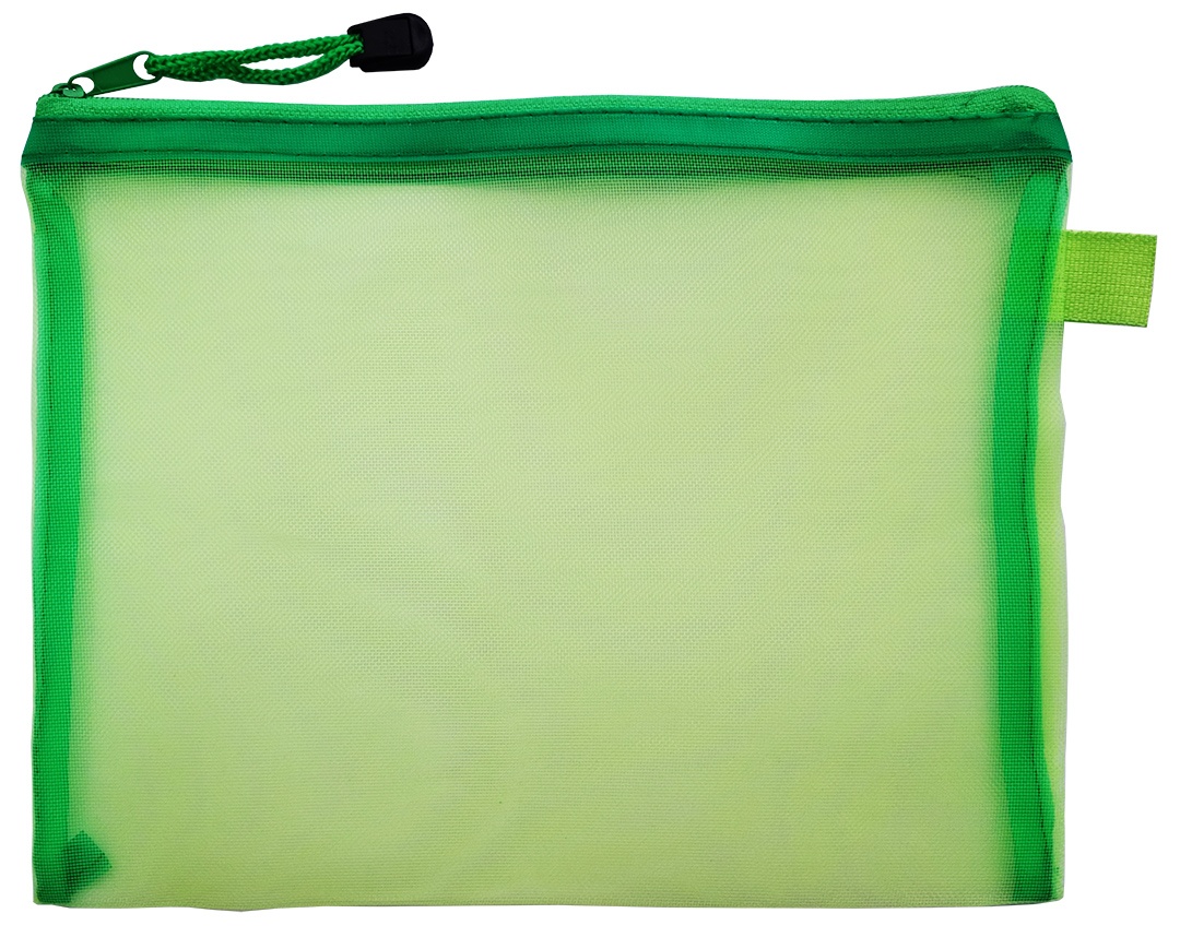 Прозрачная папка Hua Jie в мелкую сеточку, на молнии, отлично подойдет для листов формата А5, альбомов, тетрадей, канцелярских или художественных принадлежностей.