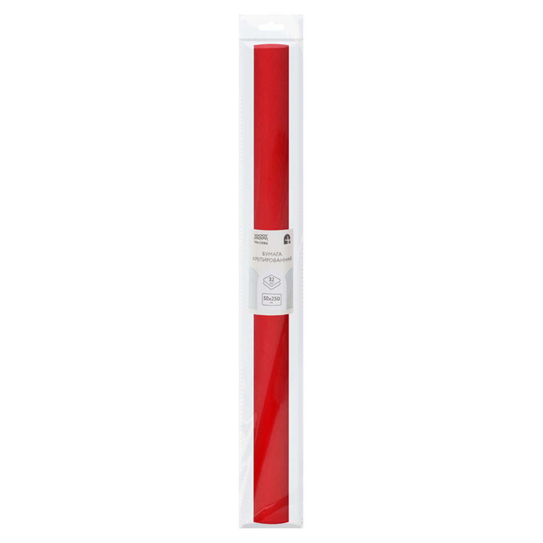 Крепированная бумага в рулоне «ТРИ СОВЫ», красная, отлично подойдет не только для упаковки букетов и подарков, но и для создания праздничных украшений и поделок.