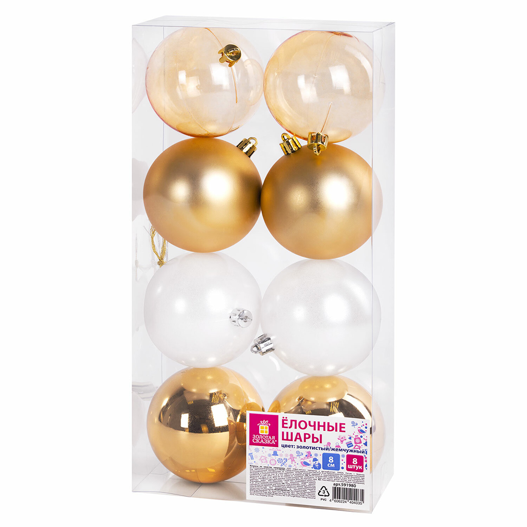 Набор шаров елочных Eden Colors, 8 см, 8 шт, золотистый/жемчужный, пластик