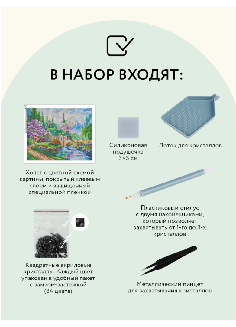 Алмазная мозаика Три совы «Церковь в горах» — увлекательное занятие, которое дарит умиротворение и гармонию, развивает усидчивость, аккуратность и внимательность.