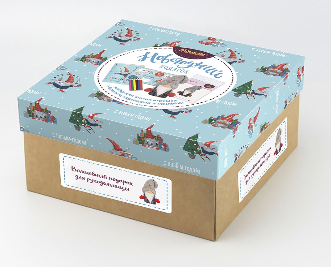 Набор для шитья Miadolla Новогодний бокс «Гномик» предназначен для создания тканевой игрушки, которую можно использовать для украшения комнаты.