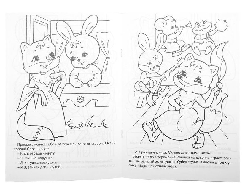 Книжка-раскраска A4, 8 л., HATBER, Сказка за сказкой, «Теремок»