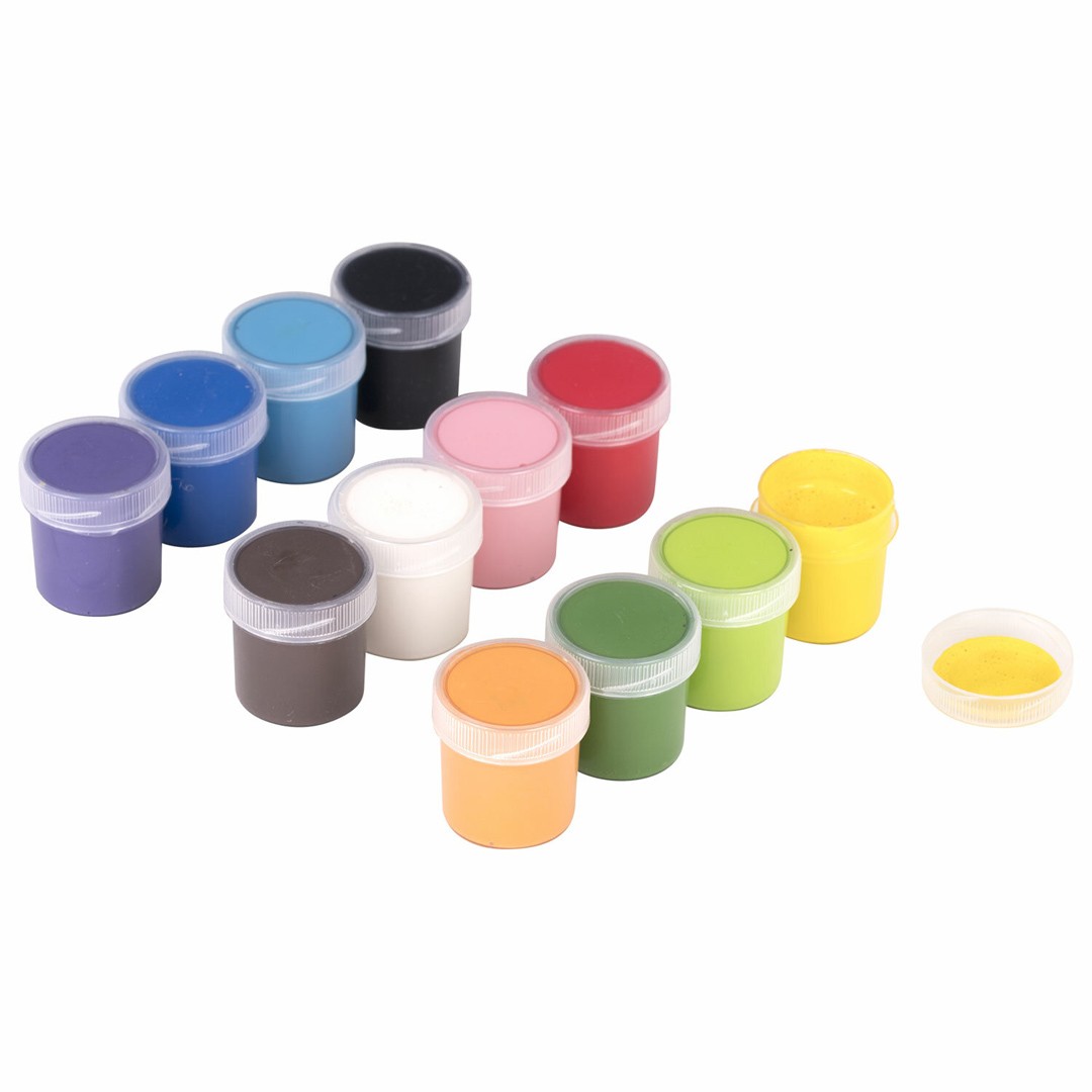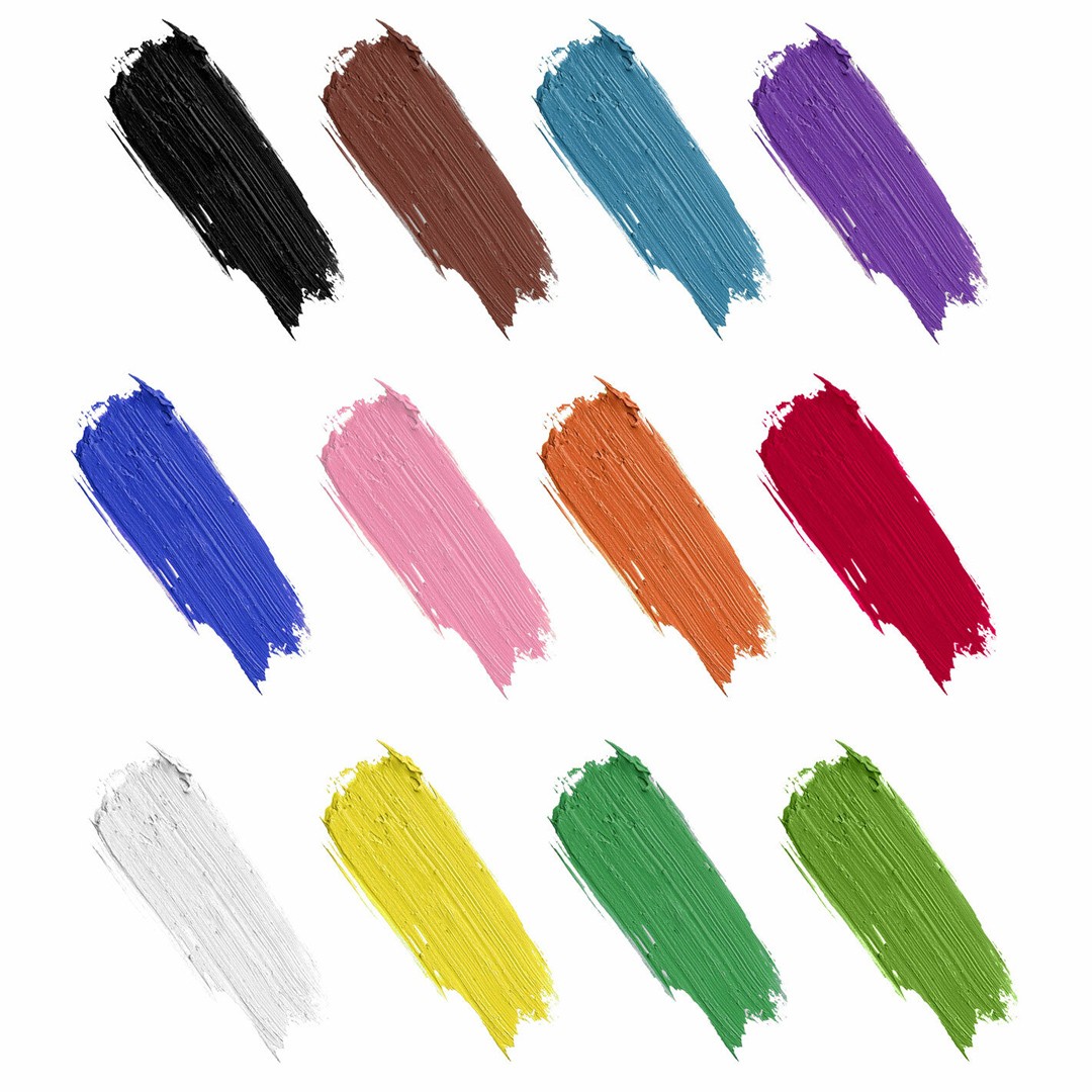 В наборе 12 ярких цветов: белый, черный, красный, желтый, синий, зеленый, оранжевый, фиолетовый, голубой, розовый, светло-зеленый, коричневый.