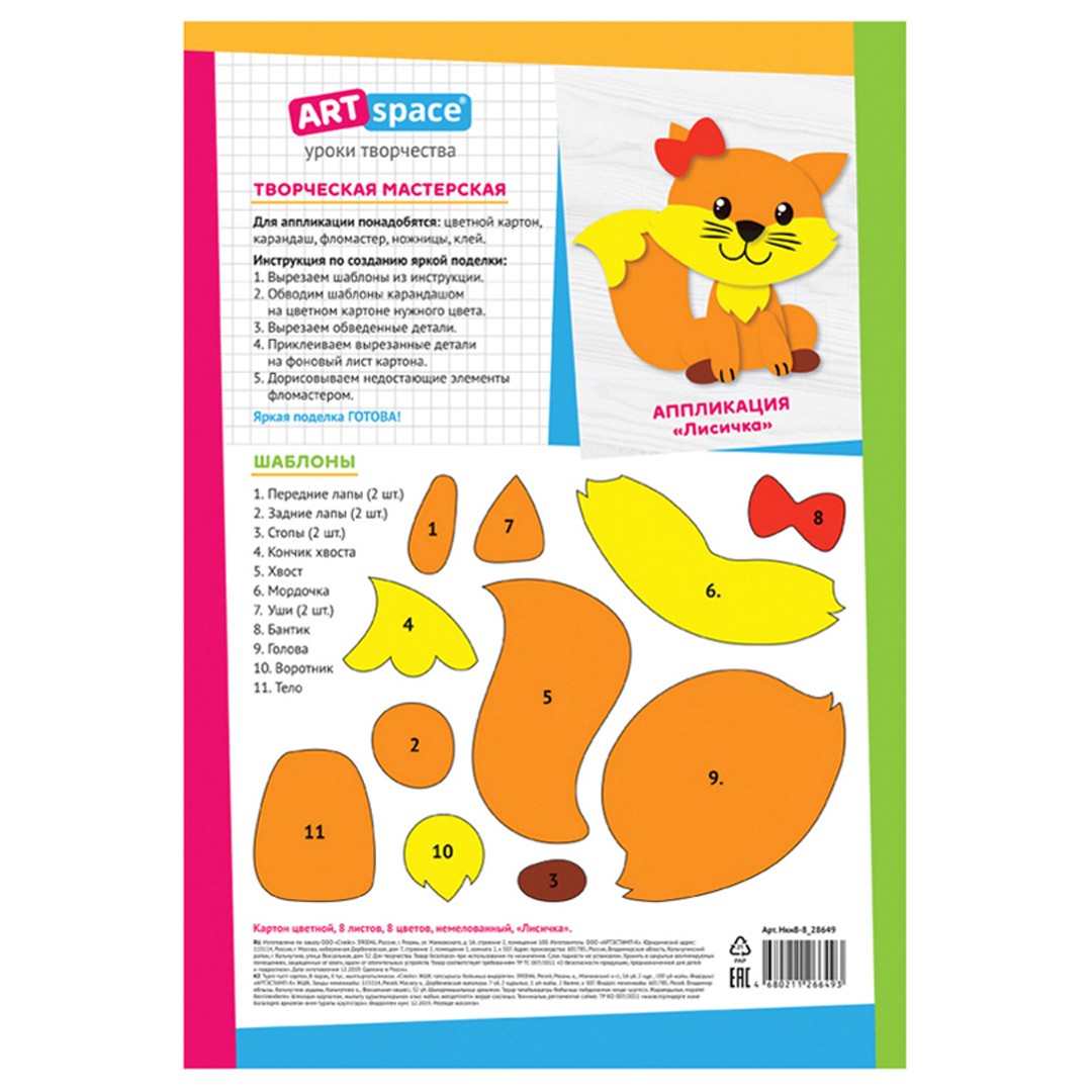 Набор цветного немелованного картона ArtSpace «Лисичка» для детского творчества, развития мелкой моторики, зрительно-моторной координации, логического мышления и воображения.