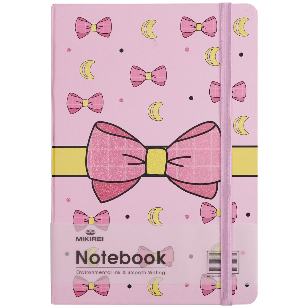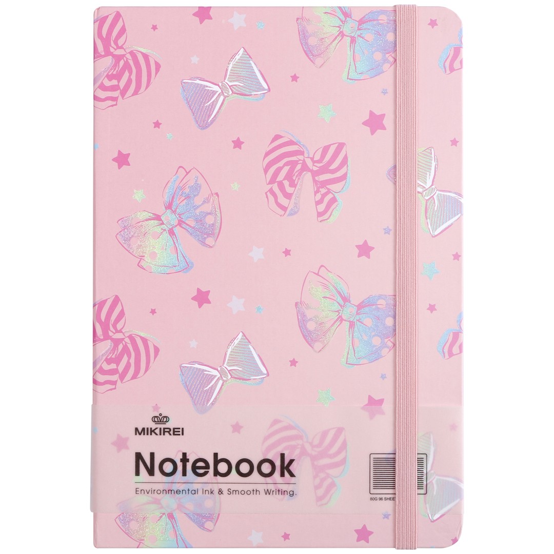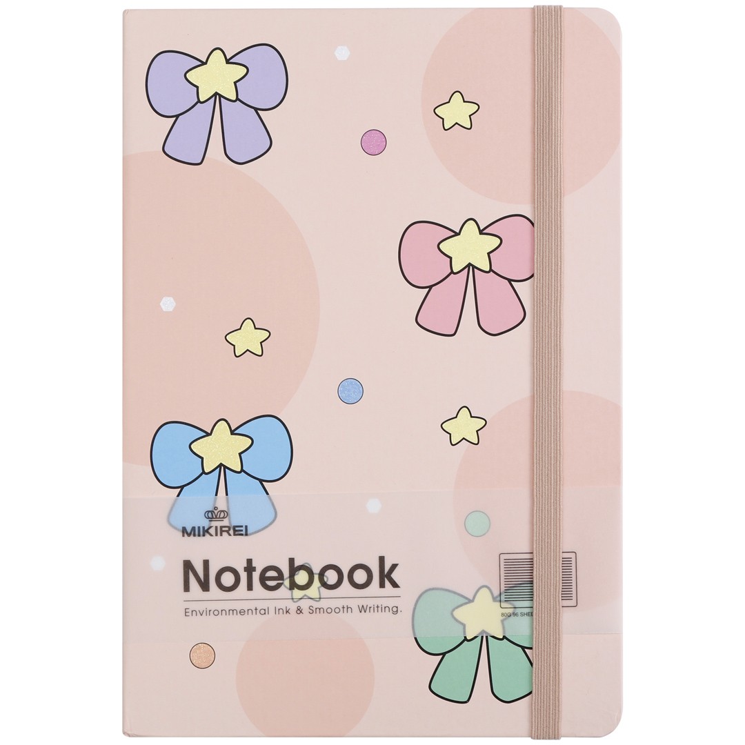 Блокнот Mikirei «Бантики» в твердой обложке, с закругленными уголками и вшитой резинкой для предотвращения случайного открывания.