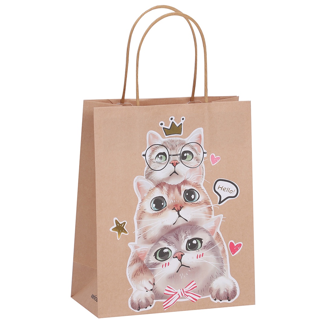 Пакет бумажный подарочный крафтовый 26х32х12 см, Котики, Mikirei — этот товар можно заказать оптом и в розницу с доставкой по Беларуси на сайте M4,