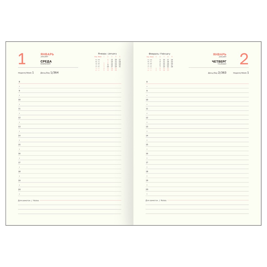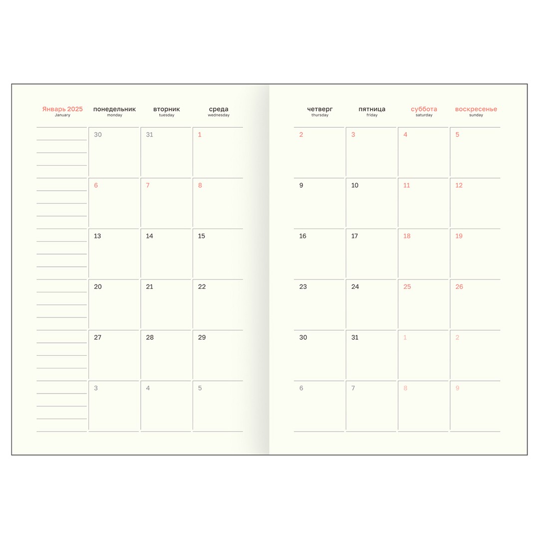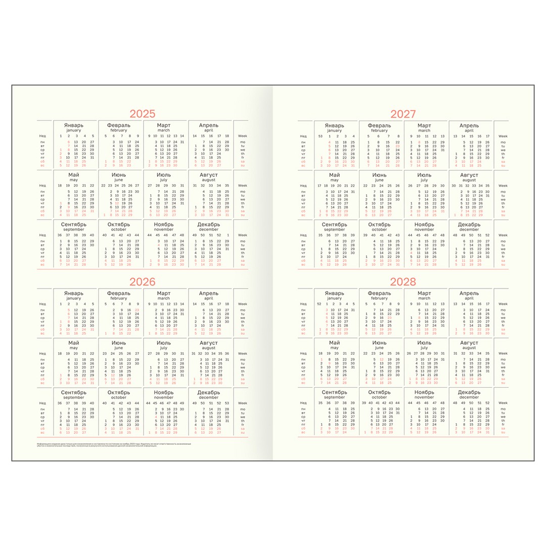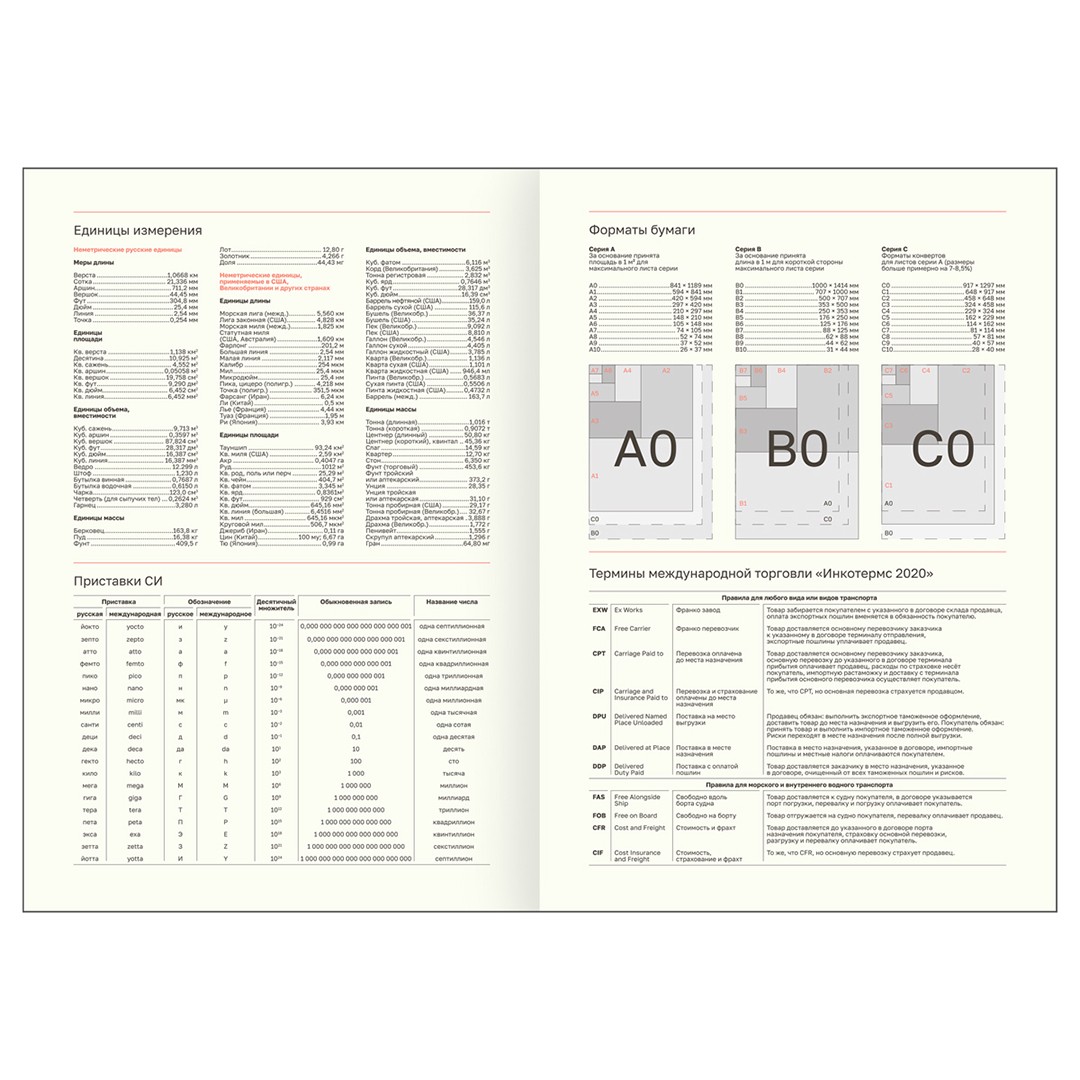 В ежедневнике предусмотрена справочная информация, ежемесячный планер, календарь и другие полезные сведения.