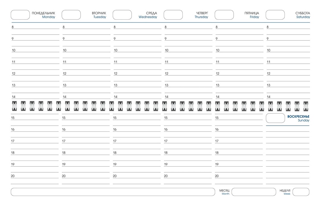 Вся необходимая информация находится под рукой: все дни недели расположены на одной странице, а это значит, что все ваши планы и записи находятся всегда перед глазами.