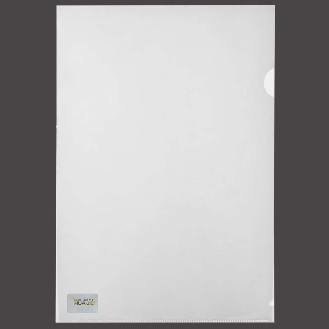 Прозрачная папка-уголок Hua Jie формата А4+ с боковым вырезом для удобства использования, предназначена для хранения и транспортировки документов, предотвращает их смятие, загрязнение.