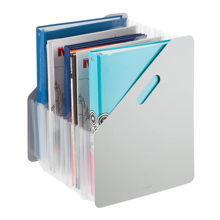 Вместительный и прочный лоток Deli для документов формата А4, на 13 расширяемых отделений, благодаря ручкам, можно удобно переносить. Это позволяет организовывать рабочее пространство в любом месте.