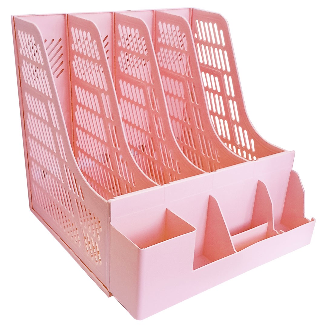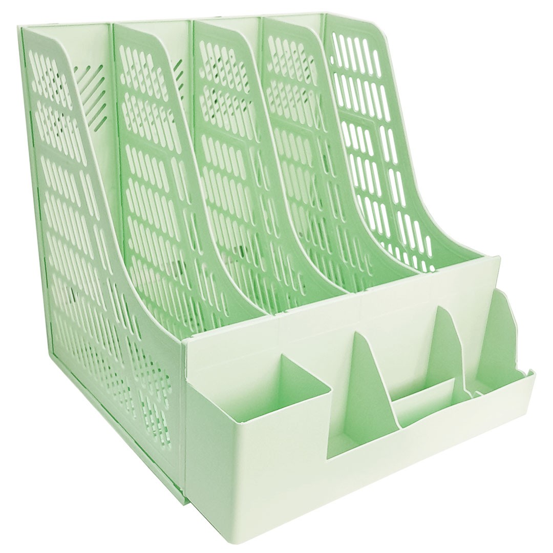 Многофункциональный, вертикальный, сборный лоток на 4 секции, для хранения документов А4 формата и 5 отделений для канцелярских мелочей.