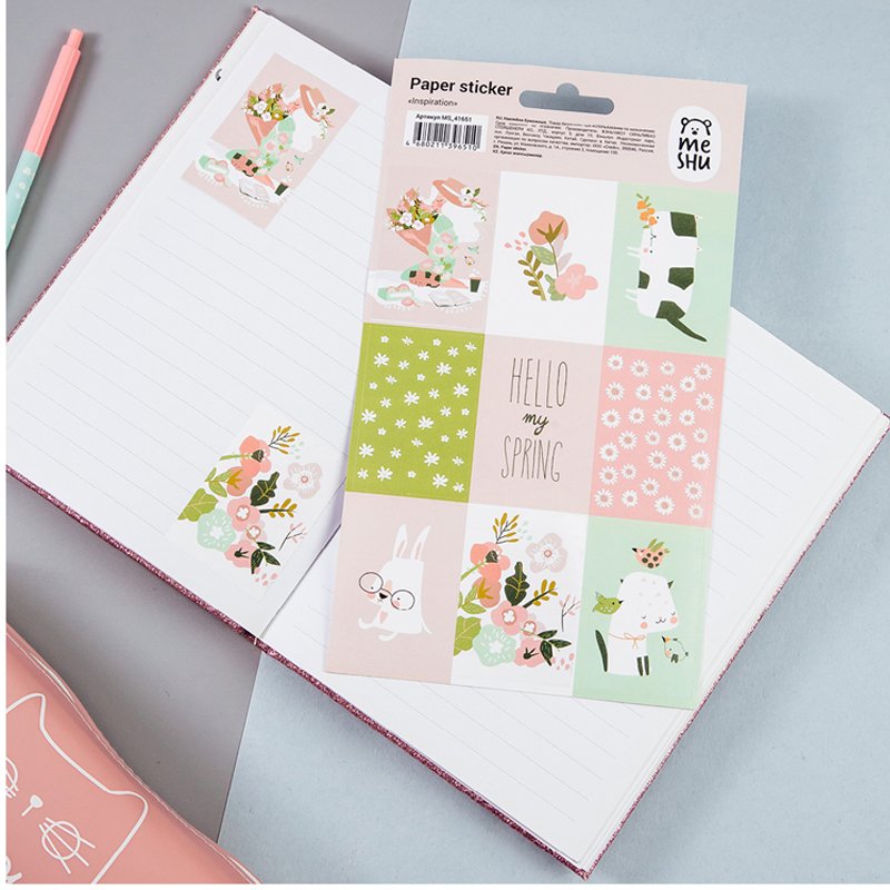 Бумажные наклейки MESHU Inspiration — отличный помощник в креативном оформлении записей в блокнотах и дневниках. Яркие современные дизайны от MESHU сделают творческий процесс увлекательным и подарят отличное настроение.